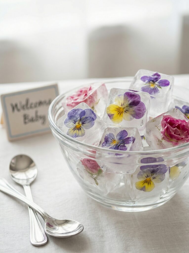 Present them in small bowls or on a marble board alongside floral ice cubes (flowers frozen into ice cube trays) that guests can add to their drinks. This small detail turns the drink station into an interactive, Instagram-worthy moment.