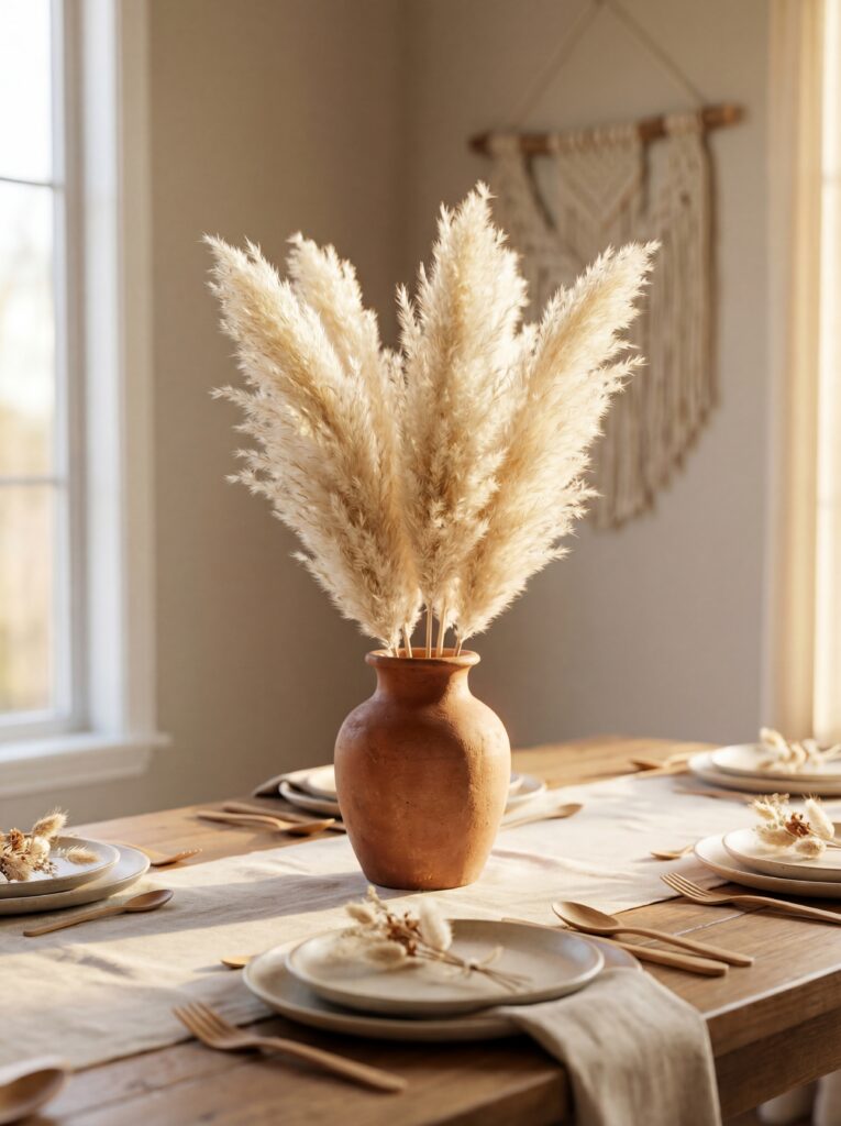 - Pampas grass — statement texture for boho and neutral tables