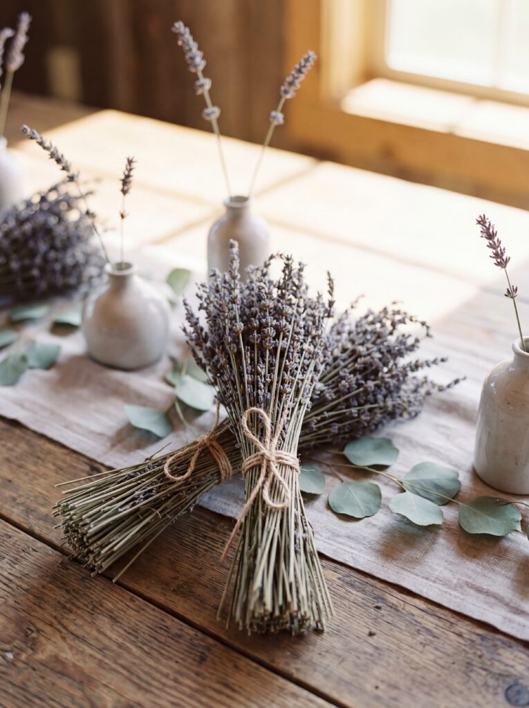 - Dried lavender — fragrant and beautiful, in bundles or scattered loose