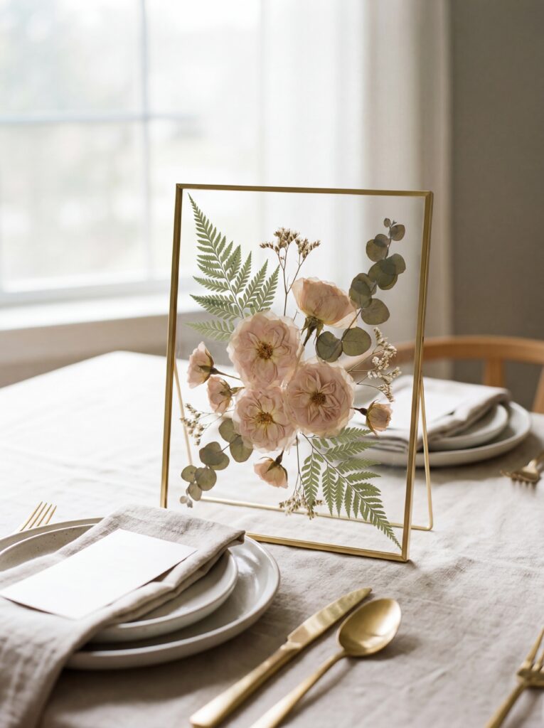 - Pressed flowers — stunning in clear frames as table decor or as place card accents