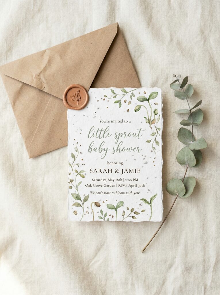 - Seed paper invitations β embedded with wildflower seeds that guests can plant after reading. Functional, memorable, and perfectly on-theme.