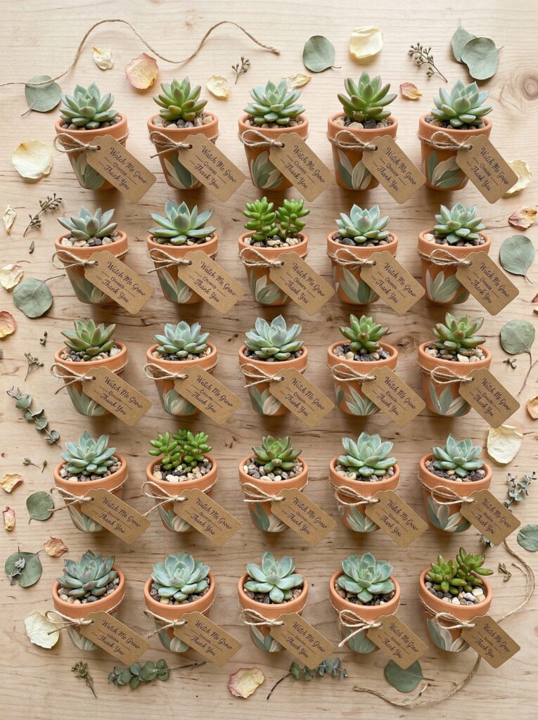A $2 succulent in a hand-painted pot often feels more special than a $6 generic candle because of the thought and personalization involved. Guests feel the effort. You don’t need to spend more β you need to add meaning.