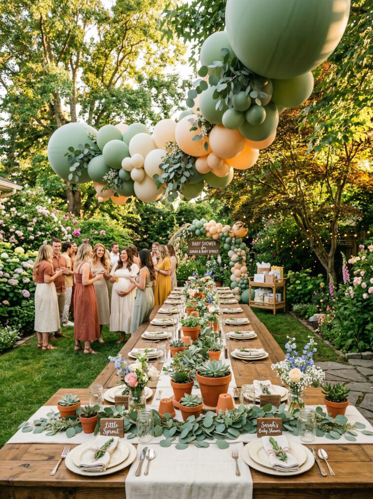 For 30 guests using mostly DIY elements, budget around $300β$400 for a well-executed shower. A mid-range celebration with a mix of purchased and DIY elements typically runs $600β$900. The theme’s natural materials β succulents, eucalyptus, terracotta, fresh herbs β are all inexpensive, which keeps costs down without sacrificing any visual impact.